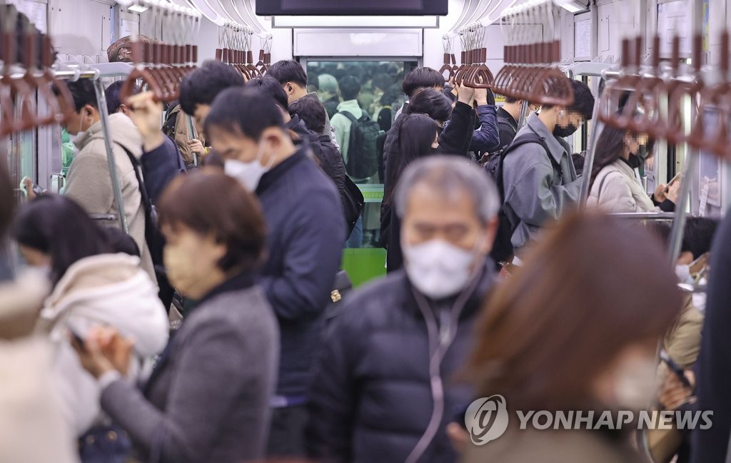1월 말 실내 마스크 착용 의무가 해제되고, 이날부터는 대중교통에서도 마스크를 벗을 수 있게 됐지만 대부분 평소처럼 마스크를 쓴 채로 출근길에 나섰다.