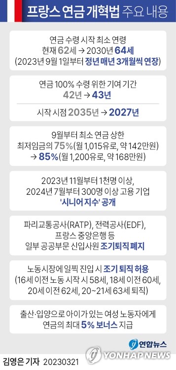 근로 기간을 늘리는 대신 올해 9월부터 최저 연금 상한을 최저 임금의 85%로 10%포인트 인상한다는 조항도 유지됐다.