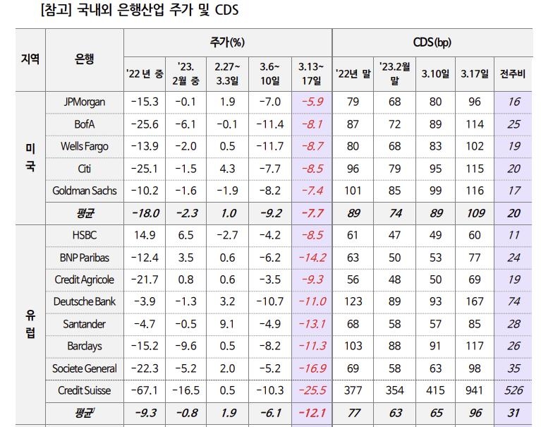 미국 은행들의 CDS프리미엄 급등은 실리콘밸리은행(SVB)과 시그니처은행의 연쇄 붕괴로 경영 환경이 급속도로 악화하고 투자자들의 신뢰가 하락했기 때문으로 풀이된다.