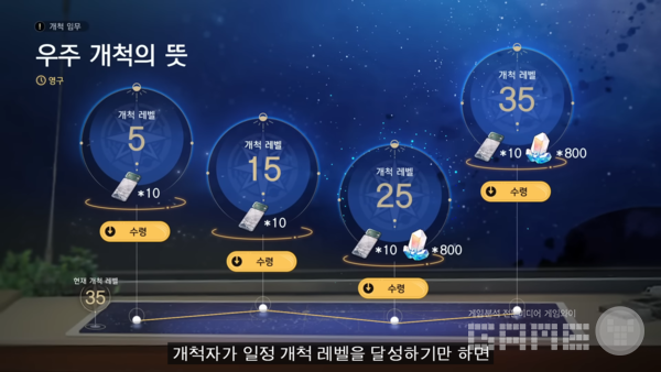 동시에 우주 개척의 뜻 이벤트도 진행하는데, 이용자가 개척자 레벨을 일정 이상 달성하기만 한다면 이벤트 화면에서 총 뽑기 50회 상당의 별의 궤도 티켓 40장과 1,600 성옥을 획득할 수 있다.