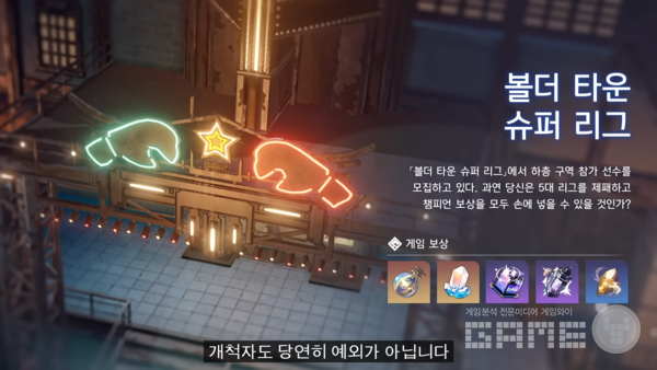 이 밖에도 1.0 후반부에 업데이트될 볼더 타운 슈퍼 리그도 공개했다. 이용자들은 무작위 추첨으로 진행되는 다양한 경기에 도전해 버프를 얻을 수 있고, 이벤트 기간 동안 한정 도전을 완료하게 되면 추가 보상을 획득할 수 있다.