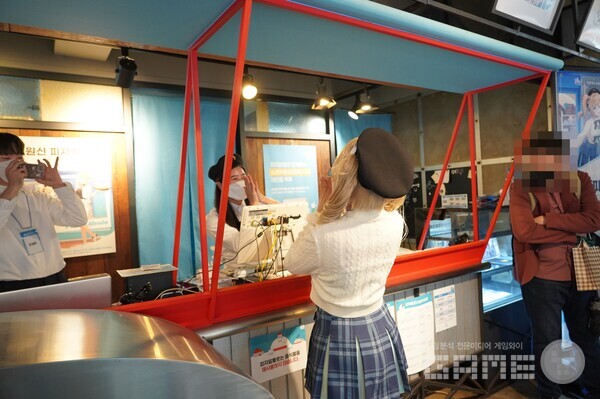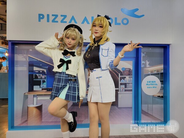 진과 바바라의 사진을 찍을 수 있는 포토존도 있었는데, 정말 타이밍에 맞게 코스어들이 매장에 들어와 사진을 같이 찍을 수 있었다. 퀄리티 높은 코스프레가 많은 이용자들의 시선을 모았고, 피자를 먹던 이용자가 같이 사진을 찍기 위해 잠깐 식사를 멈추는 모습도 볼 수 있었다.