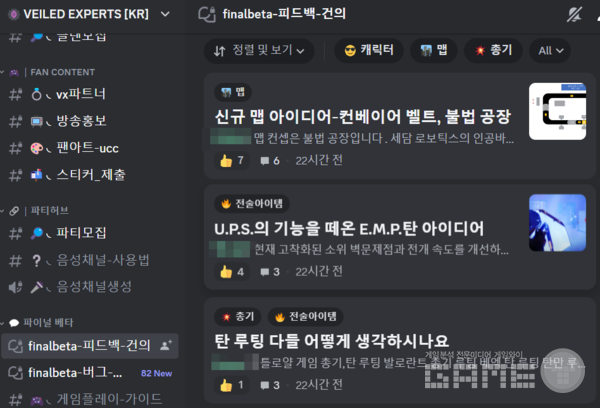 그렇기에 글로벌 및 스팀 출시를 준비하는 게임들의 디스코드 채널이 최근 적극적으로 운영되고 있다. 넥슨의 경우 ‘더 파이널스’, ‘베일드 엑스퍼트’의 디스코드를 운영했다.