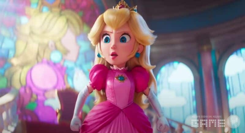 기존 설정과 조금 다른 점은, 히로인 ‘피치’가 마리오 일당의 보호를 받아야 했던 캐릭터였다면, 영화상에서는 겨울 왕국의 ‘엘사’처럼 강한 여전사 이미지로 그려진다. (실제로 엘사를 오마주한 듯한 손동작을 한다.) 마리오를 직접 트레이닝하는 것은 물론 선두에서 맞서 싸우고 리더십을 발휘한다. 이는 최근의 디즈니 공주 설정을 많이 따라간 듯하다.