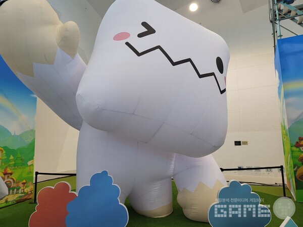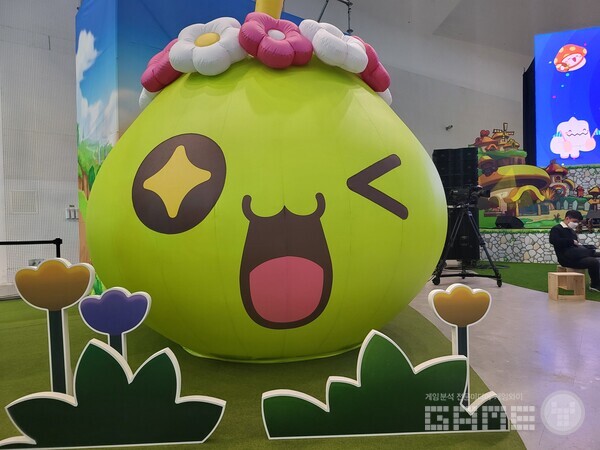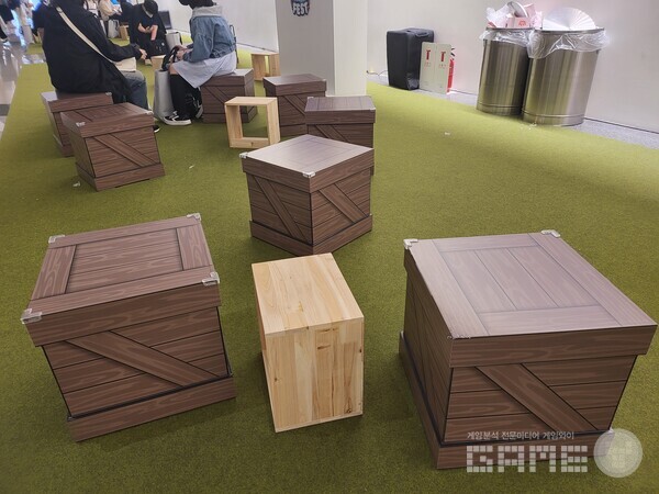 쉬는 의자마저도 게임 내 나무상자로 만들어, 정말 “온 세상이 메이플스토리다”라고 말할 수 있을 정도로 높은 디테일을 보여줬다. 핑크빈, 예티 등의 인형탈이 돌아다니는 것은 덤.