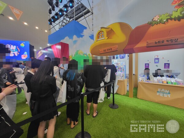 다양한 굿즈들이 전시되어 있었는데, 이른 시간임에도 핑크빈과 슬라임 소프트 인형은 품절됐다. 위 제품들은 추후 홈플러스, 롯데마트, 나라홈데코 홈페이지에서 구매할 수 있다는 설명이 붙어있어, 굿즈를 구매하지 못한 이용자들도 아쉽지만 이해하는 모습을 볼 수 있었다.