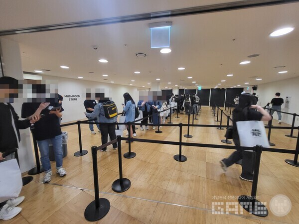 공식 굿즈를 살 수 있는 머쉬룸 스토어에도 많은 이용자들이 방문했다. 태블릿을 이용한 예약제로 진행했기에 대기 시간을 아낄 수 있었고, 스토어 내부에도 차단봉과 스태프들을 통해 구매 동선이 최적화되어 있었다.