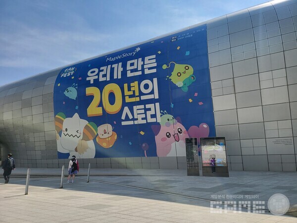 넥슨은 서울 동대문에 위치한 동대문디자인플라자(DDP)에서 ‘메이플스토리’의 20주년을 기념한 오프라인 행사 ‘메이플스토리 팬 페스트’를 진행했다. 동대문역에서 내려 약 10분 정도 걸으면 DDP를 찾아볼 수 있는데, 대기하는 동선에서부터 ‘메이플스토리’의 20주년 행사가 여기서 진행된다는 것을 확실히 찾아볼 수 있었다.