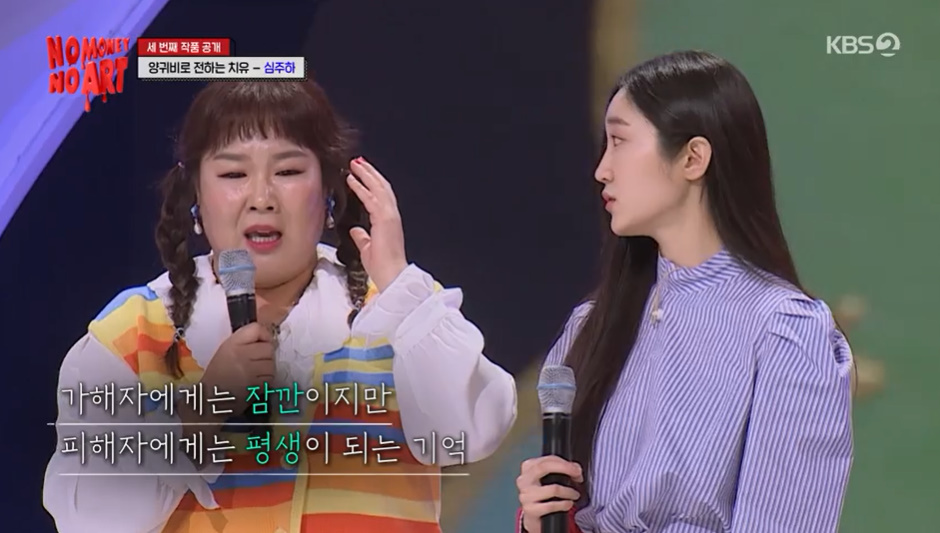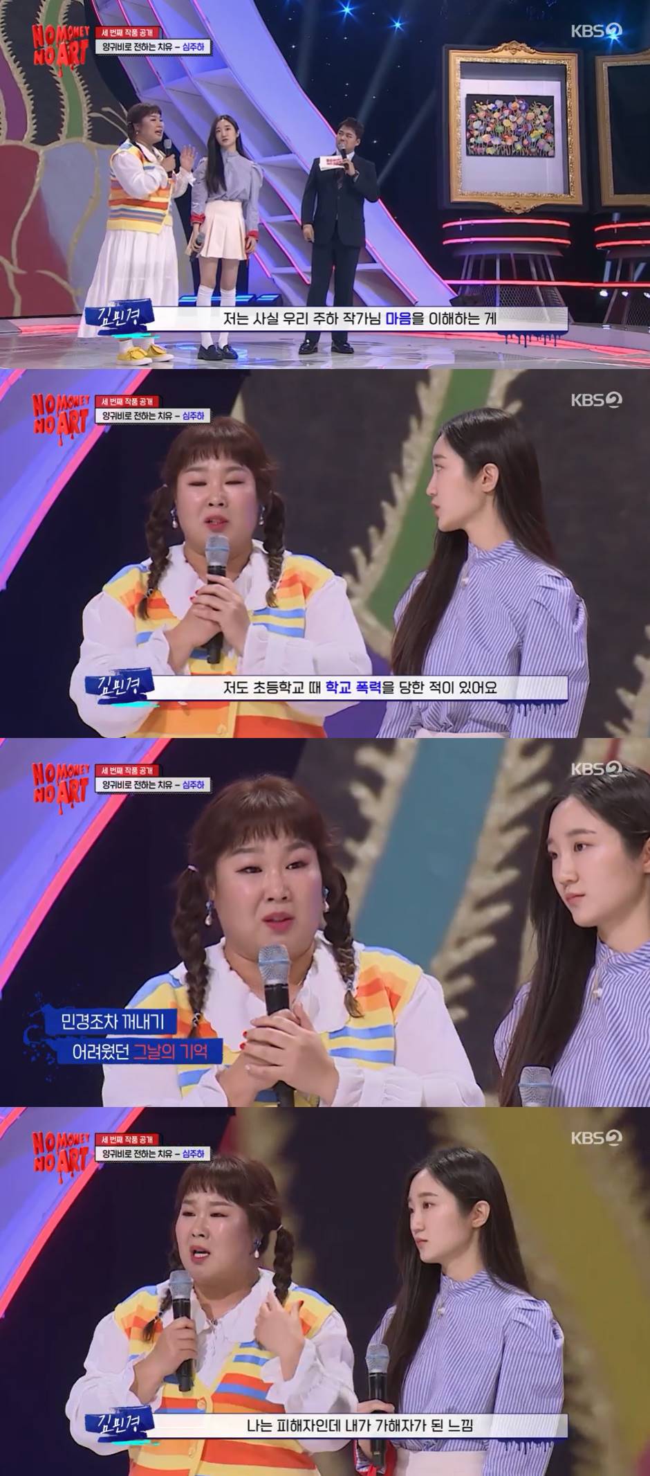 4일 방송된 KBS 2TV '노머니 노아트'에서 김민경이 최초로 학교폭력 피해 사실을 밝혔다.