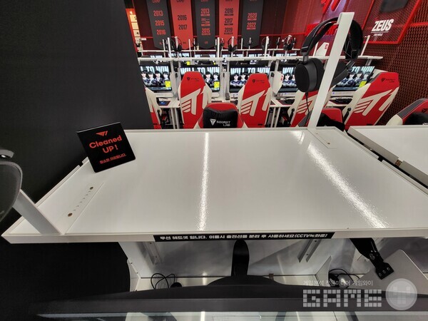 T1 베이스 캠프에는 약 250석 이상의 PC방 좌석이 준비되어 있다. PC방 공간이 넓어 좌석간의 간격도 괜찮았고 전반적인 디자인도 깔끔했다.