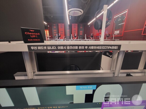 PC 사양보다 더 놀라웠던 점은 전 좌석에 무선 헤드셋이 준비되어 있었다는 점이다. 종류는 스틸시리즈 Arcits 9으로, 덕분에 기자는 태어나서 처음으로 PC방에서 무선 헤드셋을 착용해 봤다.