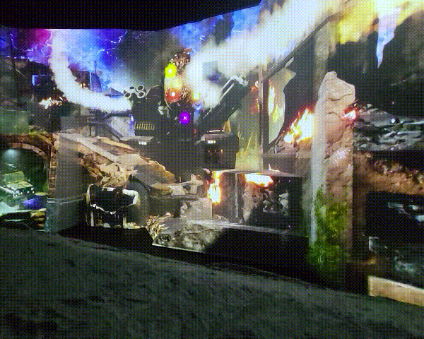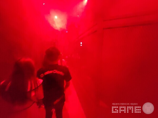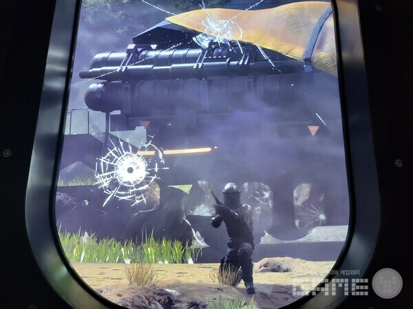 공간이 흔들리는 것부터 얼떨떨했는데 문이 열리자 연기가 짙게 피어올라 있었다. 불시착한 느낌을 제대로 받을 수 있었는데, 스태프의 안내에 따라 자리로 이동하게 되면 이제 적과의 전투가 시작된다.