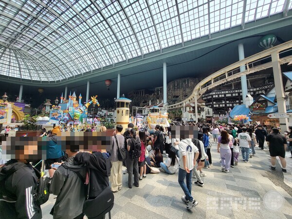 분명히 평일 점심 시간대에 사람이 없을 것이라 생각하고 롯데월드에 입장했는데, 너무나도 많은 사람들이 있었다. 잘못됐다는 것을 깨닫고 주변을 살피며 빠르게 ‘배틀그라운드’의 어트랙션을 찾기 위해 이동했다.