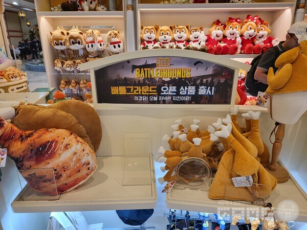 뿐만 아니라 롯데월드 내 있는 대형 스크린에서 ‘배틀그라운드’ 영상이 재생되는 것도 볼 수 있었고 기념품 샵에서는 관련 굿즈들도 볼 수 있었다. 정말 치킨같이 만든 키링이 매장을 방문한 이용자들에게 많은 관심을 받는 모습도 볼 수 있었다.