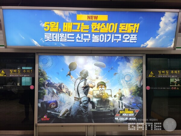 평일 점심 시간대이기에 여유롭게 지하철을 타고 잠실역에 도착할 수 있었다. 내리자마자 바로 ‘배틀그라운드’ 어트랙션에 관련된 광고를 볼 수 있어 기대감이 더욱 올라가기 시작했다. 그리고 이 기대감은 롯데월드에 입장하자마자 박살 나기 시작했다.