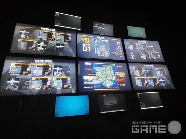 나가기전에 LED 전광판을 통해 자신의 킬 수, 명중률, 사용 무기를 확인할 수 있다. 점수순으로 정렬되는데, 기자의 경우 ‘모션 슈팅 씨어터’에서의 사진이 찍혀있었다. 1등은 전광판 가운데 크게 공개되기에 쉽게 찾을 수 있다.