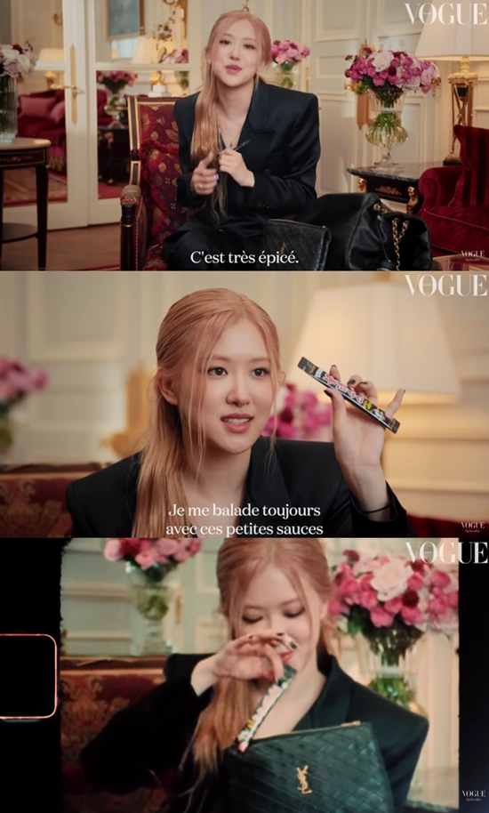 25일(한국시간) 보그 프랑스(Vogue France) 유튜브 채널에는 생로랑 앰버서더 로제의 가방 속 소지품을 소개하는 영상이 게재됐다.