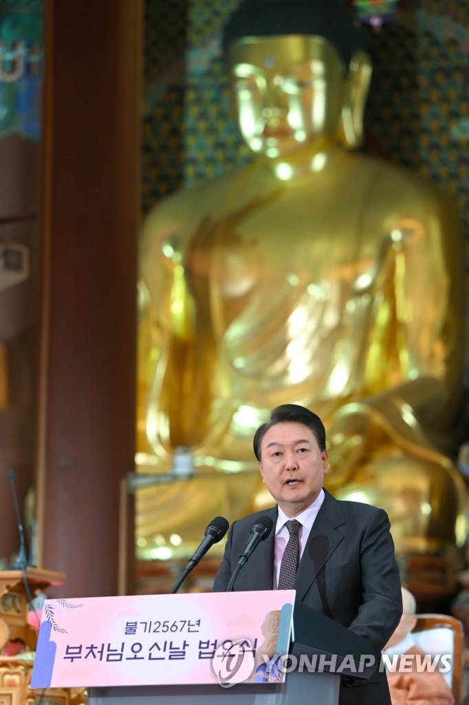 (서울=연합뉴스) 한혜원 기자 = 윤석열 대통령은 부처님오신날인 27일 "우리 정부가 지향하는 인권 존중과 약자 보호, 세계 평화의 국정철학은 바로 부처님의 가르침에서 나오는 것"이라고 말했다.