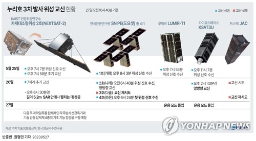 과학기술정보통신부는 27일 오전 10시 40분 기준 누리호에 실려 발사된 위성 상태를 확인한 결과를 이같이 발표했다.