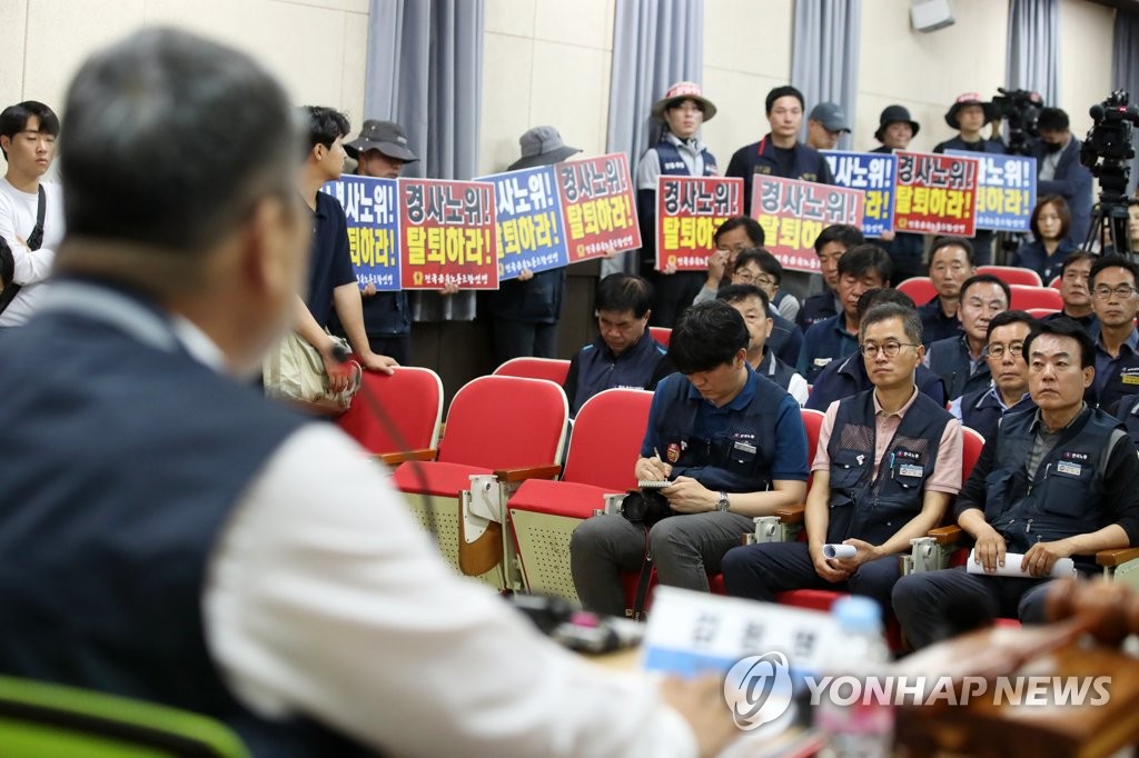 (광양=연합뉴스) 김승욱 기자 = 한국노총이 산별 노조 간부에 대한 강경 진압에 반발해 대통령 직속 노사정 사회적 대화 기구인 경제사회노동위원회(경사노위)를 통한 사회적 대화 참여를 전면 중단하기로 했다.