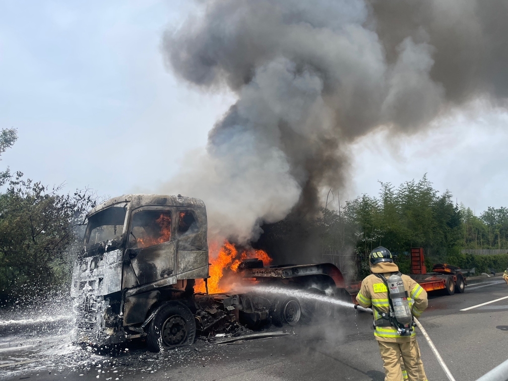 당시 트레일러 운전자 40대 B씨는 차 고장 여부를 확인하기 위해 정차한 뒤에 차에서 내린 상태였다.