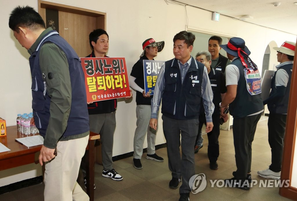 (광양=연합뉴스) 김승욱 기자 = 한국노총이 7일 산별 노조 간부에 대한 강경 진압에 반발해 대통령 직속 노사정 사회적 대화 기구인 경제사회노동위원회(경사노위) 참여를 전면 중단하기로 했다.