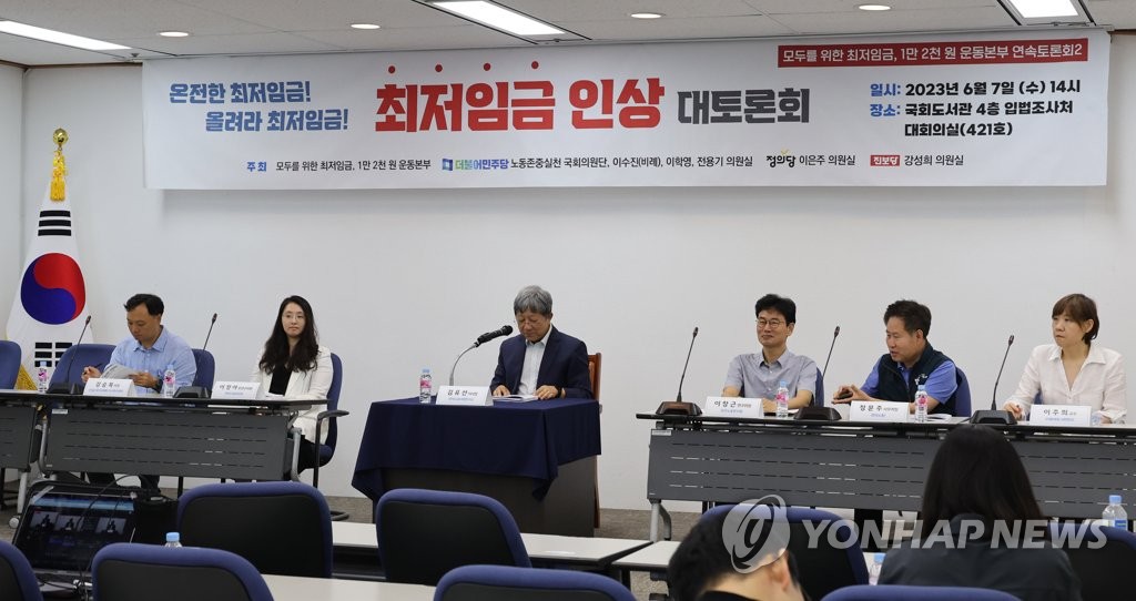 한국노총과 민주노총 등 40여개 시민사회단체로 구성된 '모두를 위한 최저임금 1만2천원 운동본부'는 7일 오후 국회에서 '최저임금 인상 대토론회'를 개최했다.