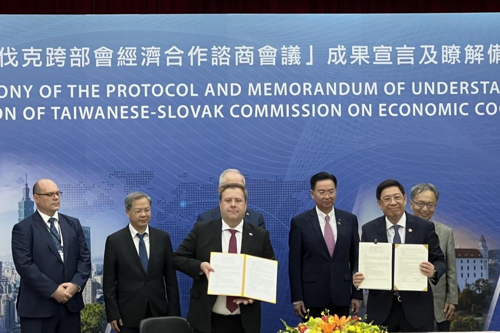 7일 대만 매체 타이완뉴스에 따르면 대만과 슬로바키아는 전날 타이베이 대만 외교부 청사에서 제3차 대만-슬로바키아 경제협력위원회 회의를 열고 헬스케어, 문화, 기술 서비스·라이선스, 전력 기기 공동 연구, 전기차 하이브리드 모듈 공동 연구 등 8개 분야에서 협력 MOU를 체결했다.