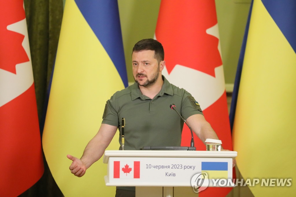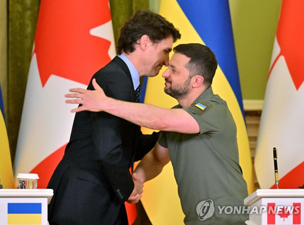 로이터, AFP 통신에 따르면 젤렌스키 대통령은 이날 우크라이나 수도 키이우를 방문한 쥐스탱 트뤼도 캐나다 총리와 회담 후 연 공동 기자회견에서 이같이 말했다.