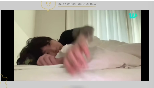 침대에 누운 정국은 "졸려. 잘 거임. 건들지 마세요. 그런 또 생각났음. 아미가 생각이 났다 이 말이여"라고 말했다.