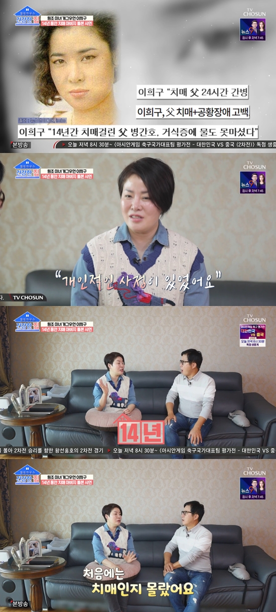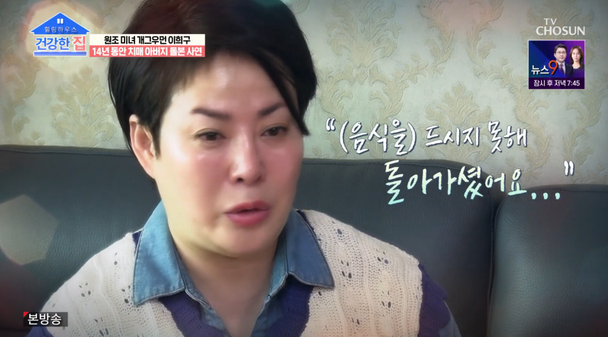 19일 방송된 TV조선 '건강한 집'에서는 14년 동안 치매 아버지를 돌본 원조 미녀 개그우먼 이희구의 사연이 전파를 탔다.