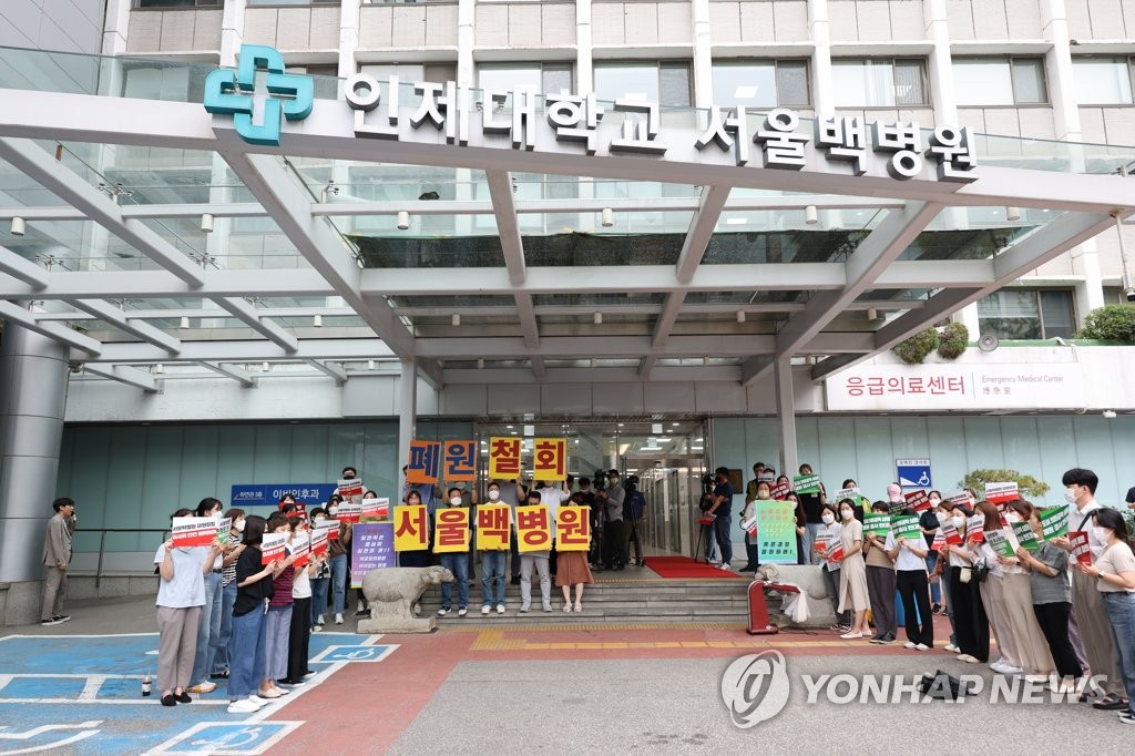 전날 서울백병원 노조가 전국보건의료산업노조는 서울백병원 본관 앞에서 기자회견을 열고 "서울백병원은 감염병 전문병원으로, 대규모 응급센터를 운영하고 있다"며 "폐원은 서울 도심의 필수의료 공백과 공공의료 기능 부재로 이어질 것"이라고 우려했다.