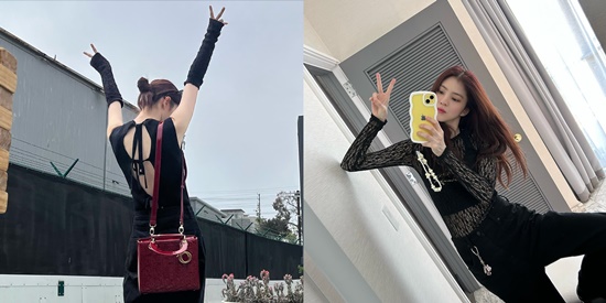공개된 사진 속 한소희는 뒤태가 포인트인 백리스의 블랙 민소매 티셔츠와 블랙 하의를 매치한 모습과 블랙 시스루 상의에 블랙 팬츠를 착용한 모습이다.