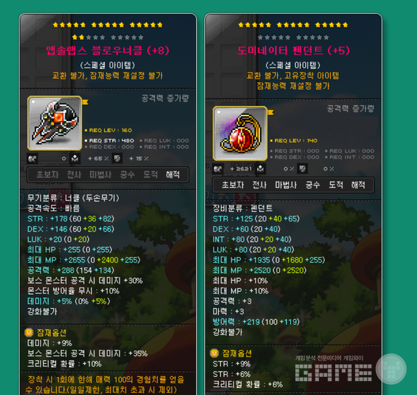 이러한 이용자들을 위해 1레벨부터 6차전직인 260레벨까지의 하이퍼버닝 아이템 세팅을 준비했다. ‘메이플스토리’를 정말 오랜만에 하거나, 처음 플레이하는 이용자들에게 도움이 되기를 바란다.