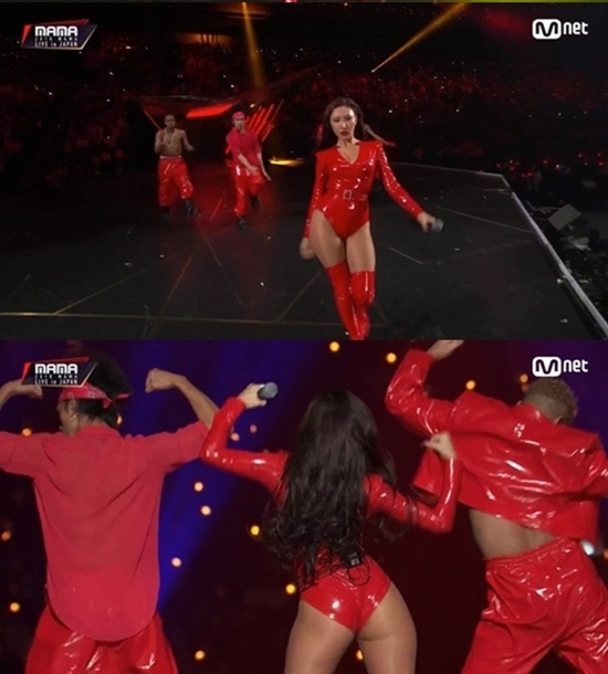 당시 일본에서 진행된 'MAMA'에서 화사는 새빨간 의상을 입고 무대에 올라 솔로 퍼포먼스를 펼쳤다. 당시 옷은 화사의 몸매 라인이 고스란히 드러나는 밀착 의상으로, 가슴과 골반 등 굴곡진 라인이 부각되어 많은 화제를 모았다.