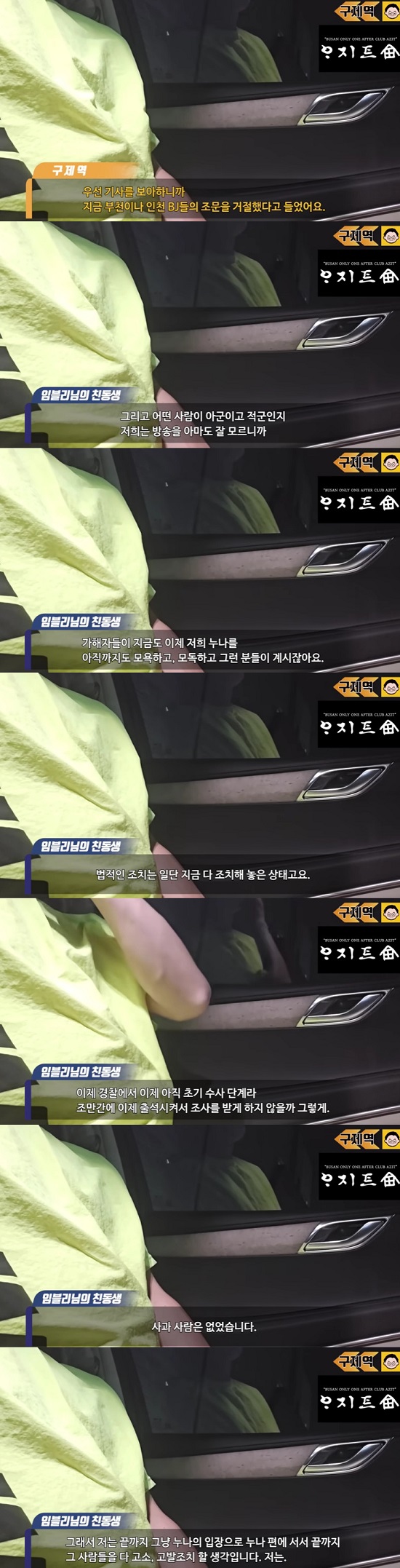 임블리의 친동생은 "그런 것은 없었다. BJ분들 출입을 일체 거절한 이유가 유족이 노출되는 것도 원치 않고 어떤 사람이 아군이고 적군인지 잘 모르니까"라고 설명했다.