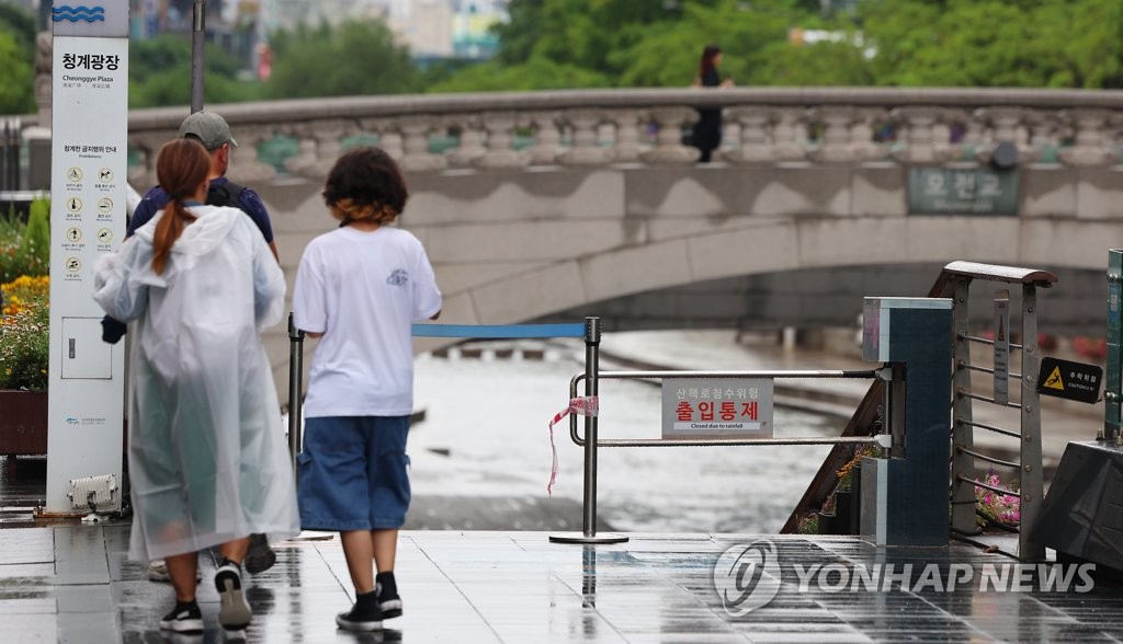 (서울=연합뉴스) 고은지 기자 = 29일 서울시 전역에 호우주의보가 내린 가운데 서울시는 시내 모든 하천의 출입을 통제했다.