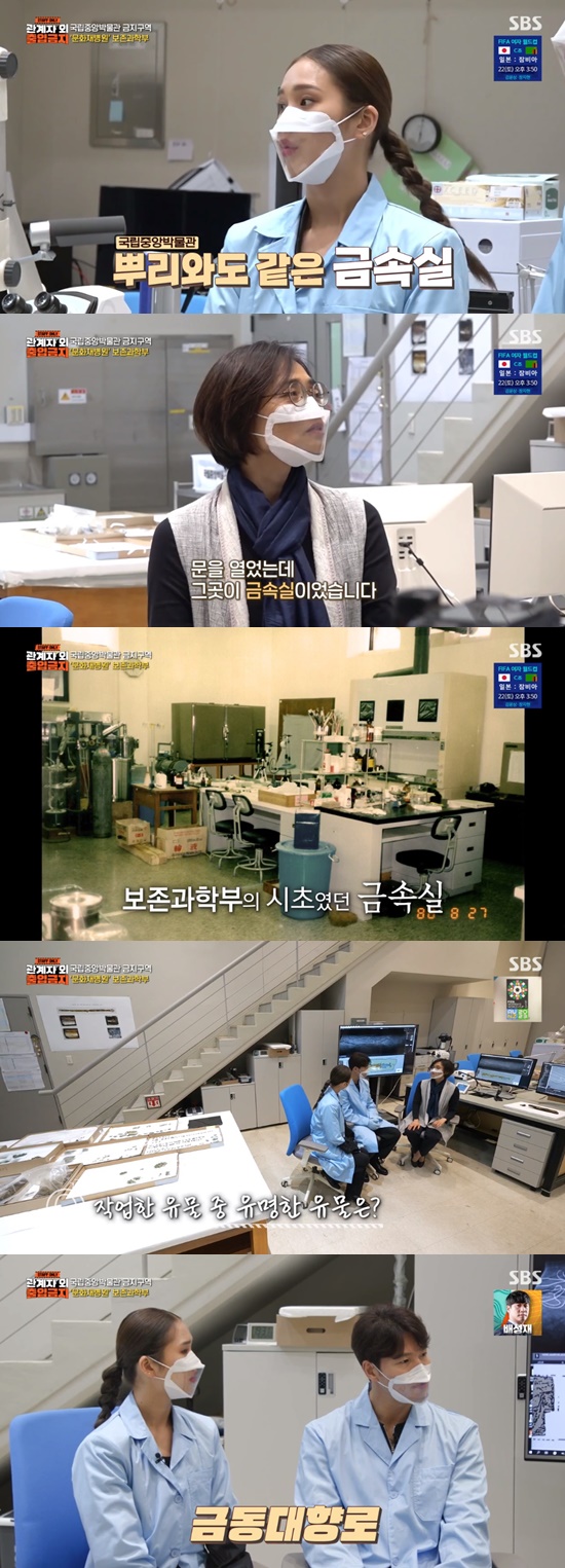 국립중앙박물관 학예실장은 "보통 관람객들은 전시장까지 오지만, 국보와 보물이 보관된 수장고 복도를 통과해 보존과학실에 들어갈 수 있다"며 김종국, 양세형, 이이경, 미미를 안내했다.