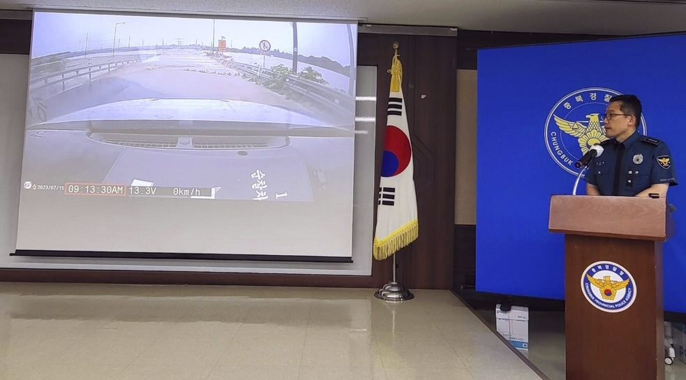23일 충북경찰청 112상황실은 브리핑을 열고 침수사고 지점 관할서인 오송파출소 순찰차 1대의 블랙박스 영상을 공개했다.