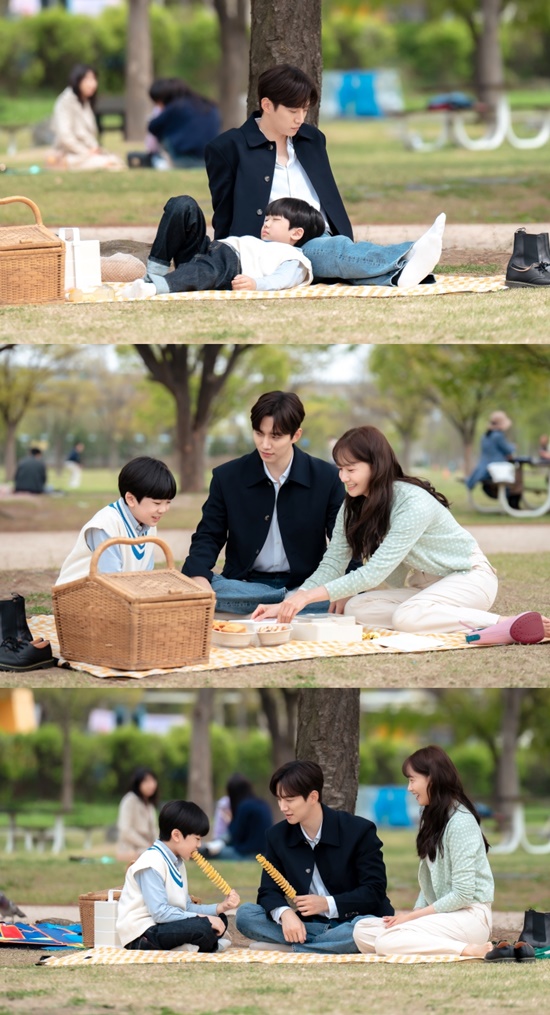 이런 가운데 공개된 사진 속에는 구원과 천사랑이 윤지후와 한강 소풍에 나선 모습이다. 조카가 편히 쉴 수 있도록 다리를 빌려주는 다정한 삼촌 구원과 소풍을 위해 직접 음식을 준비한 천사랑의 정성이 고스란히 느껴진다.