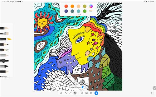 원하는 도안을 선택하고, 다양한 브러시로 색을 유려하게 뽐낸 뒤, 다른 이용자들과 그림을 공유하면 된다.
