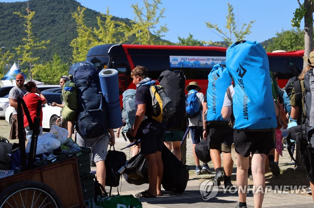 (부안=연합뉴스) 정경재 나보배 기자 = 2023 새만금 세계스카우트대회 참가자들이 8일 전국 각지로 이동을 시작했다.