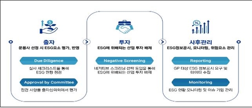 모태펀드 출자사업을 통해 운용사를 선정할 때 ESG 요소를 평가하고 이후 운용사가 투자를 단행할 때 ESG에 위배되는 산업에는 투자를 배제하도록 할 방침이다.
