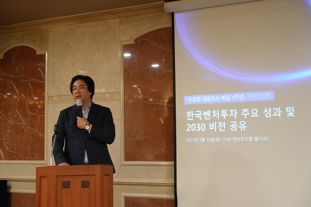 (서울=연합뉴스) 박상돈 기자 = 유웅환 한국벤처투자 대표는 19일 모태펀드 출자사업 시 환경·사회·지배구조(ESG) 투자기준을 도입하고 디지털 전환(DX)을 통해 모태펀드 운용 고도화를 추진할 것이라고 밝혔다.