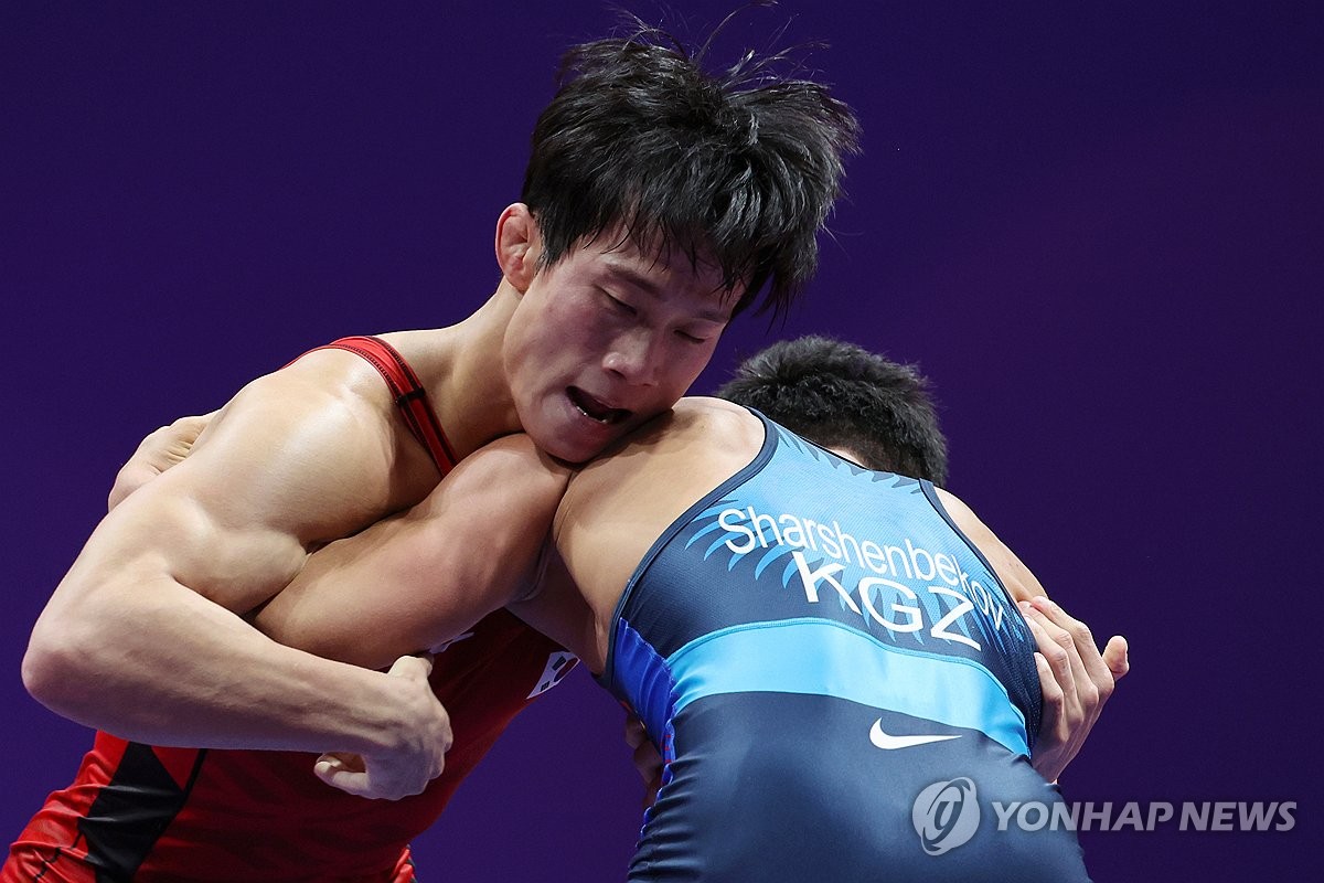(항저우=연합뉴스) 김경윤 기자 = 레슬링 국가대표 정한재(28·수원시청)는 2022 항저우 아시안게임에서 극적으로 동메달을 따낸 뒤 '가장 고마운 사람'을 묻는 말에 "아내"라며 울음을 참았다.