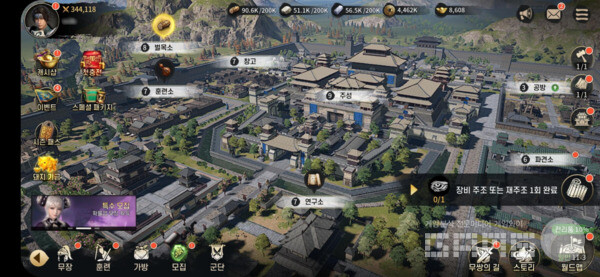 또 다른 성장의 재미를 제공하는 ‘본영 시스템’은 ‘본영’ 내 다양한 목적의 건물을 건설 및 경영할 수 있으며, 무장 성장에 필요한 재료와 각종 아이템을 획득하거나 자원을 거래할 수 있다. 또한 무장을 성주나 내정관으로 임명해 내정 보너스를 얻을 수 있으며, 무장 임무 파견을 통해 추가 경험치 획득이 가능하다.