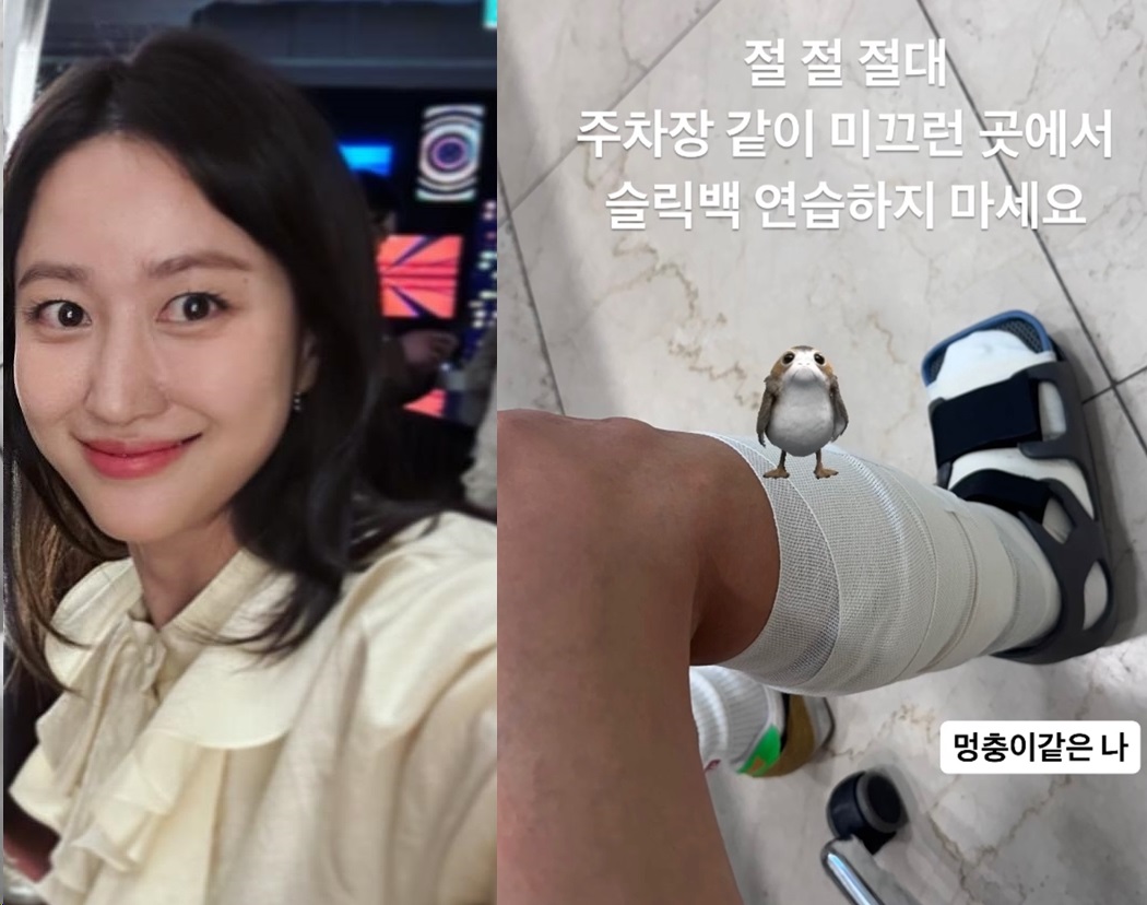 전혜빈은 "절대 주차장 같이 미끄러운 곳에서 슬릭백 연습하지 마세요"라는 글과 함께 사진을 게재했다.