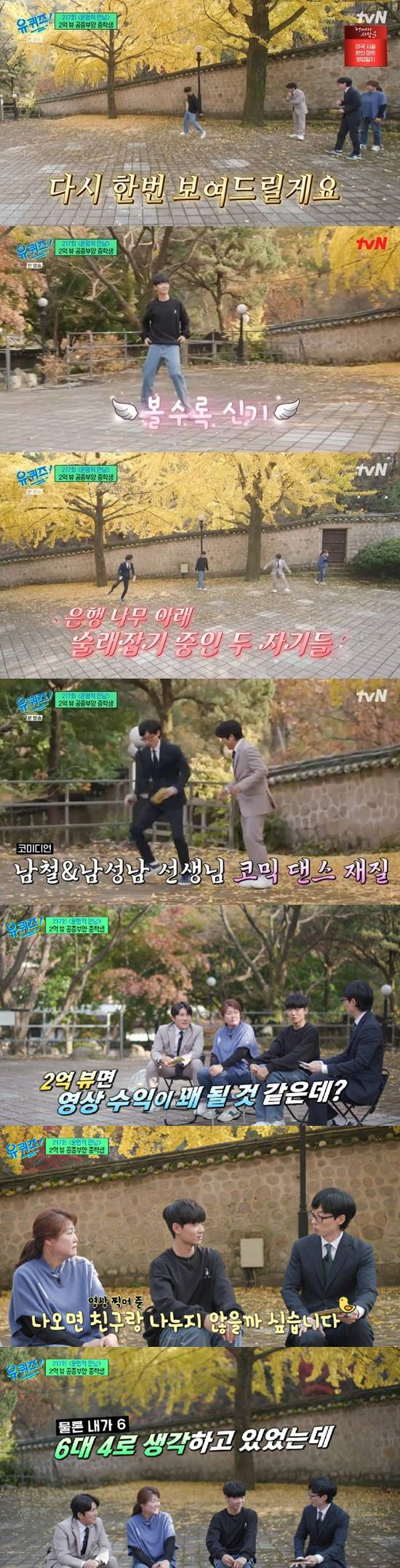 인기에 힘입어 '슬릭백' 2억뷰 돌파의 주인공 이효철 군은 tvN '유퀴즈 온 더 블럭' (이하 '유퀴즈')에도 출연하게 됐다.