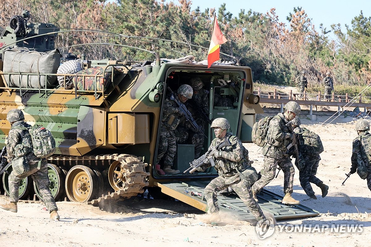 상륙함서 나온 장갑차 연막탄 쏘며 돌진…실전 같은 상륙훈련