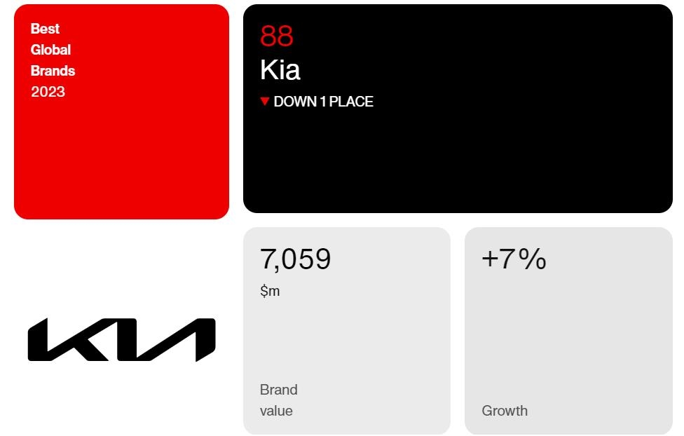 이밖에 기아는 브랜드 가치가 전년 대비 7% 상승한 7억5천900만달러(약 9천791억원)를 기록하며 88위에 랭크됐다.